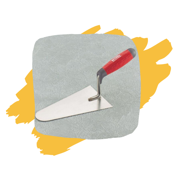 Далее готовая смесь наносится на стену обычным мастерком или пластмассовой тёркой.